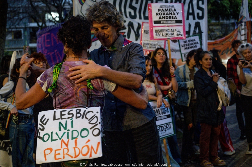 Se han producido avances en la lucha por la justicia para Sofía Fernández, mujer trans de 39 años que murió bajo custodia policial en abril de 2023. Amnistía Internacional ha apoyado a la familia de Sofía, incluida su hermana Mabel (en la foto de arriba), durante más de dos años, proporcionándoles ayuda económica para la elaboración de informes periciales y representación legal.